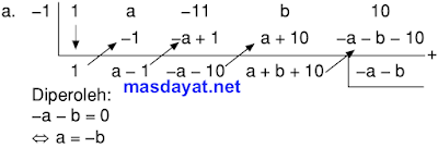 Jika. f(x) = x4 + ax3 – 11x2 + bx + 10 habis dibagi (x + 1) dan bersisa -36 bila dibagi (x – 2), tentukan: