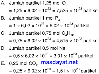 Jumlah partikel dalam 0,25 mol N2 sama dengan jumlah partikel dalam